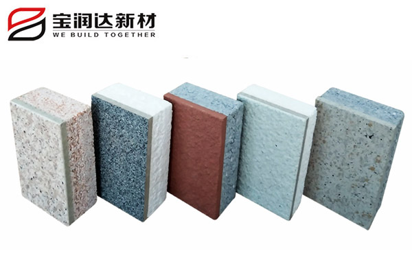 寶潤達一體板飾面層采用真石漆,多彩漆,水包水,水包砂,乳膠漆,實色/金屬氟碳超3000種顏色定制,可根據(jù)石材定做樣品
